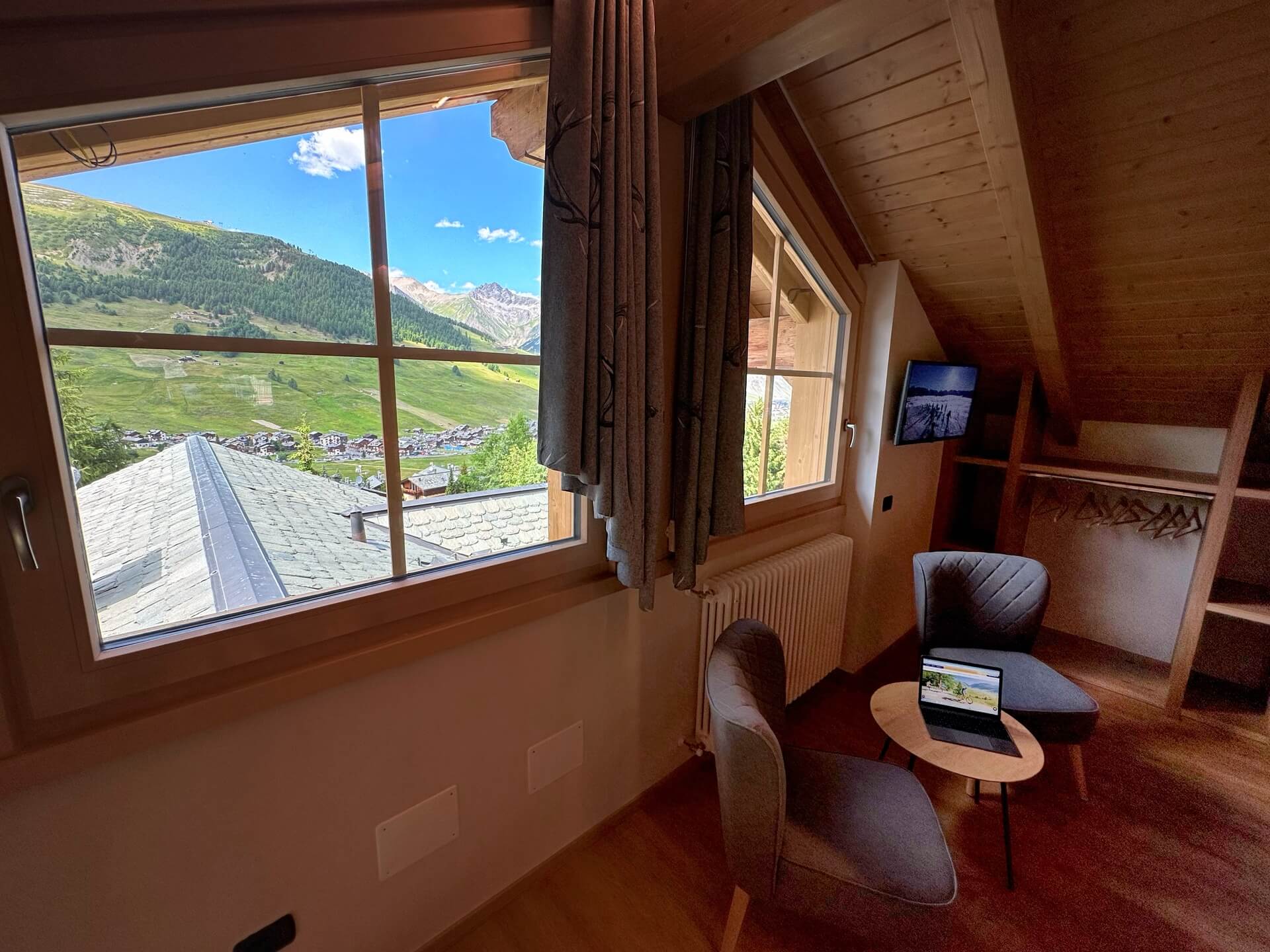 L’appartamento è situato al primo piano: il panorama di Livigno da qui è incantevole.