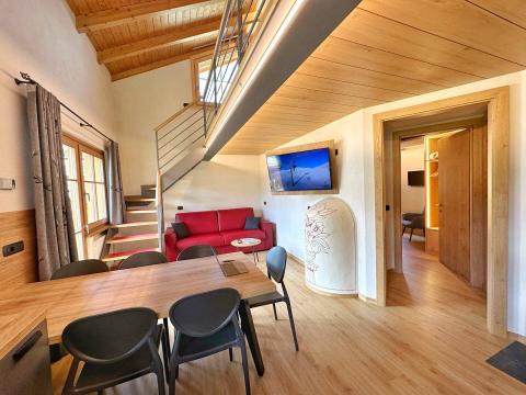 Con due camere da letto, soggiorno con divano letto matrimoniale, angolo cottura e due bagni con doccia idromassaggio l’appartamento Bordeaux è la soluzione perfetta per trascorrere le vacanze a Livigno con la famiglia o con un gruppo di amici: l’ampia metratura e la soluzione con soppalco permettono di ospitare fino a un massimo di 6 persone.